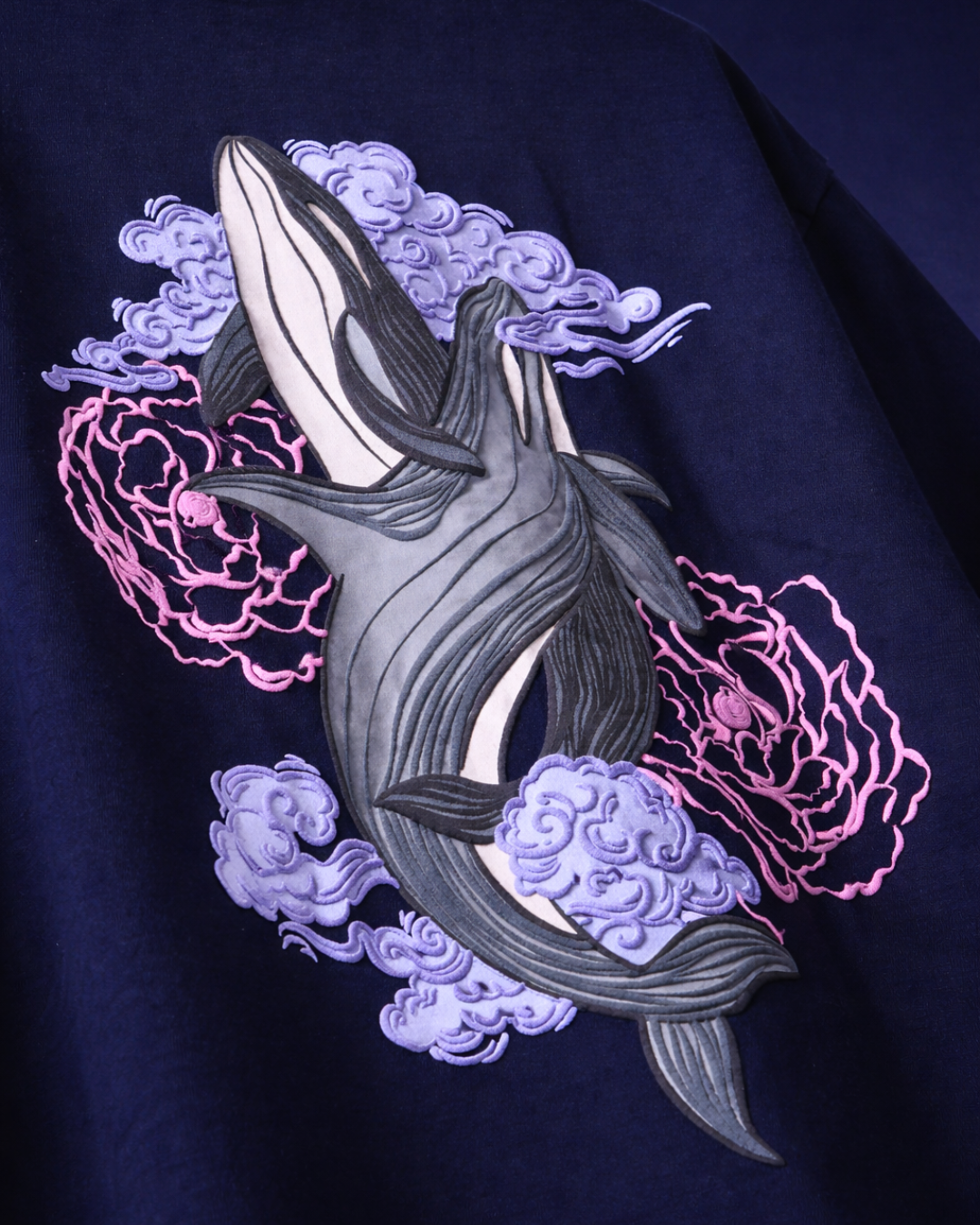 CALM ON THE SURFACE, POWERFUL BENEATH, THIS OVERSIZED T-SHIRT DRAWS FROM THE QUIET STRENGTH OF MOVEMENT BELOW STILLNESS. THE WHALE ARTWORK EMERGES THROUGH LAYERED CLOUDS, EXPRESSING CONTROL, DEPTH, AND PRESENCE WITHOUT FORCE.